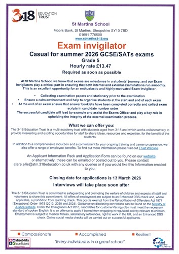 St Martins School, is part of The 3-18 Education Trust, a multi-academy trust with students aged from 3-18 and which works collaboratively to provide interesting and exciting opportunities for staff to share ideas, resources and expertise, for the benefit of the students.